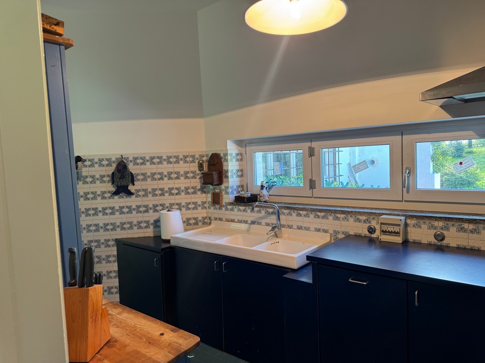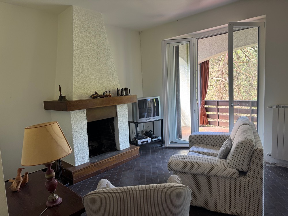 Al piano primo: sala, con vetrate che affacciano sul terrazzo e sul bosco cucina semi abitabile, studio, 2 camere di cui una matrimoniale e l’altra doppia, bagno con vasca, al piano terra si trova uno spazio composto da un locale con bagno.